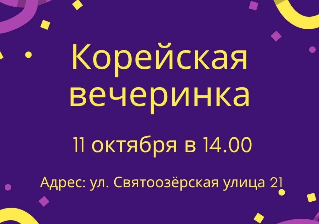 Дорогие друзья, приглашаем вас в эту субботу в 14:00 на нашу Корейскую вечеринку!🎉🎊
